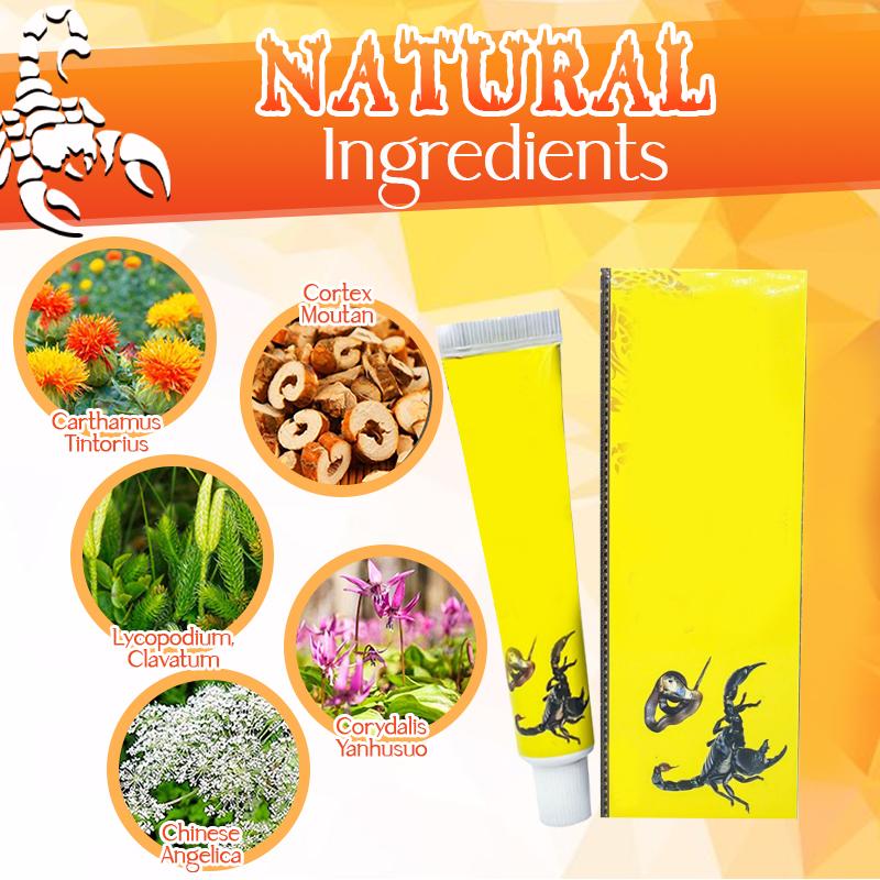 This Therapeutic Balm is made of 100% ORGANIC ingredients with a POWER of SCORPION VENOM that contains HEALING BENEFITS that is PERFECT REMEDY to the body. It PROMOTES a SMOOTHER BLOOD CIRCULATION and RECOVERY by STIMULATING with GENTLE WARMTH when applying. It is SUPER SAFE and HYPOALLERGENIC.