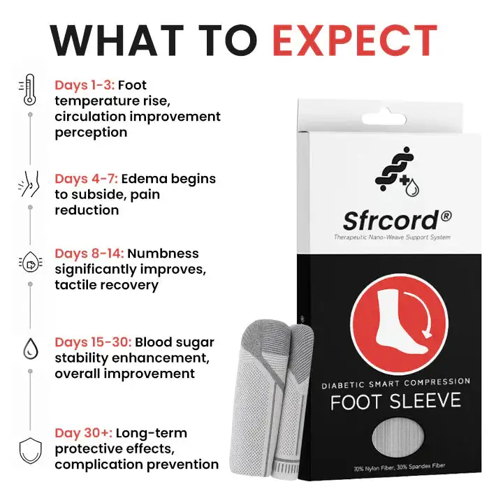 A clinical trial involving 500 diabetic patients showed that consistent use of the Sfrcord® Smart Foot Sleeve led to a 40% improvement in circulation, 65% reduction in ulcer risk, and 75% decrease in neuropathic pain within 30 days. Participants reported visible swelling reduction within the first week and significant improvements in sensation and comfort by week two.
