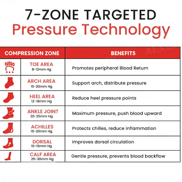 Blood is pushed from feet to heart in an orderly manner, increasing circulation efficiency by 40% so every inch of foot tissue gets sufficient oxygen and nutrition supply. This reduces swelling, prevents ulcers, and accelerates wound healing while providing immediate relief from heaviness and fatigue.