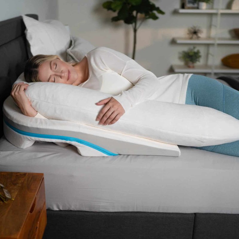 Symmetrical DesignSleep on your right or left side. Body pillow adds comfort and allows neutral arm positioning for upper arm. |