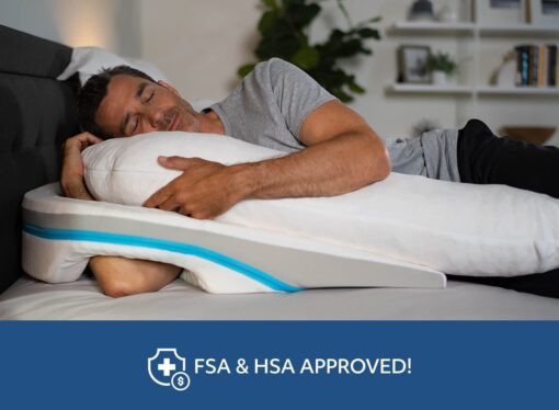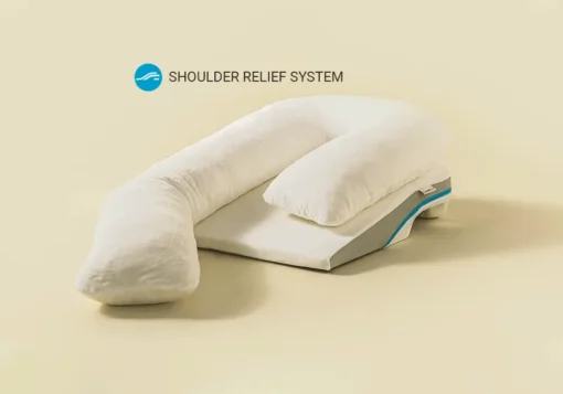 DESIGNED SPECIFICALLY FOR SIDE-SLEEPING COMFORT. MedCline Shoulder Relief System is designed for those suffering with chronic shoulder pain at night. Sleep System props you up just high-enough to take the pressure off your downside arm and shoulder. System includes Shoulder Relief Bed Wedge, full length memory foam body pillow, and smaller insert pillow; all with removable covers