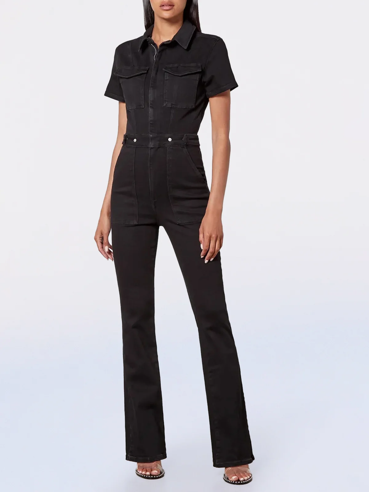 We updated this look with a bootcut flare for that ultra 70’s feel. The bootcut style adds a touch of retro charm, the jumpsuit is the ultimate one-and-done look, and ready-to-flaunt retro *flare*, while creating a sleek and elongating effect.