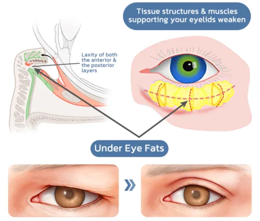 Bags under eyes are caused when the tissue structures and muscles supporting your eyelids weaken. The skin may start to sag, and fat that’s usually around the eye can move into the area below your eyes. Also, the space below your eyes can gather fluid, making the area look puffy or swollen. SLASHES™Tea Tree Hexapeptide Firming Eye Cream is specially designed for target to reduce the appearance of dark circles and bags under eyes effectively and naturally.