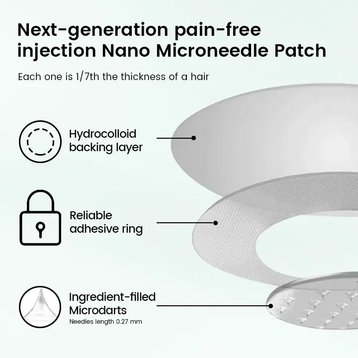 Apply the microneedle patch to areas with good blood circulation, such as the upper arm or abdomen. Avoid applying it to joints or areas with frequent movement to prevent patch detachment or microneedle breakage due to friction. - Are there any side effects?