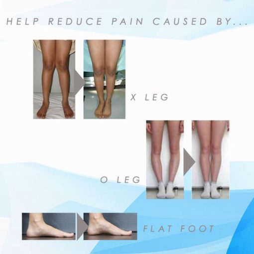 Help improves foot and leg alignment to reduce stress and pain caused by Flat Feet, XO-Type Leg, Overpronation, Knee Valgus, Foot Pain, and Plantar Fasciitis.