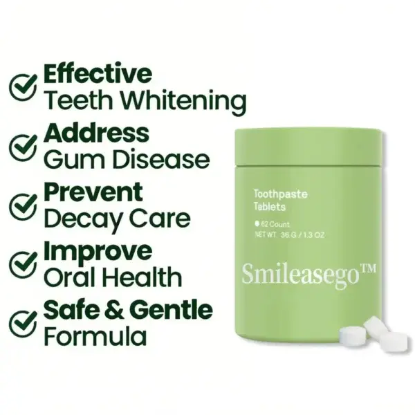 Smileasego™ Toothpaste Tablets help clean your teeth, reduce gum pain and bleeding, and make your gums healthier and stronger—all in a simple, natural way.