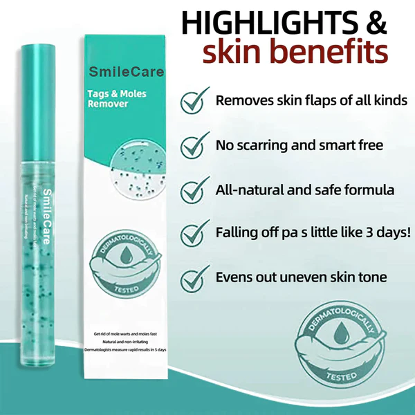 Are you tired of the lack of confidence in your appearance and social pressure from warts and moles? SmileCare™ Tags & Moles Remover can improve skin health and help eliminate warts and blemishes. Its ingredients promote skin cell regeneration, repair damaged areas and reduce inflammation. Restores clear skin in 3 DAYS.