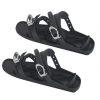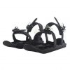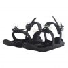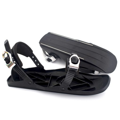 Snowfeet are made of highly durable and lightweight fiberglass reinforced material. Metal ski edges enable easy stopping. Heel brake lets you slow down. Adjustable bindings let you attach Snowfeet to any shoe.