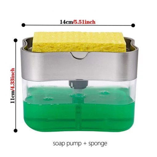 Fill the soap pump with your favorite detergent and then use the attached sponge to press down on the pump. This will distribute the proper amount of detergent to the sponge. When you need more, just pump another dose of soap.