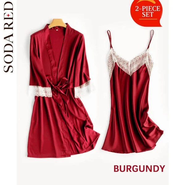 The two-piece set (more affordable) includes a nightgown and V-neck pajama dress.