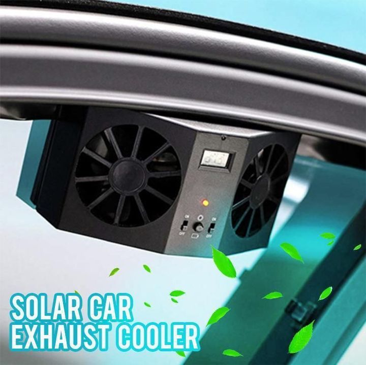 SOALR CAR EXHAUST COOLER is a SOLAR POWERED exhaust fan that is MOUNTED on the WINDOW without the NEED of plug-in mounting line which makes your car SAFE and DAMAGE FREE.