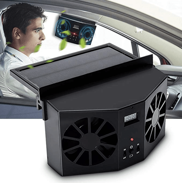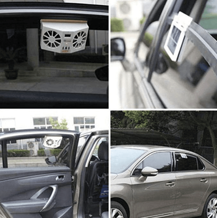 - 🏆Car Cooling Down Fan Practical Solar Powered Mini Air Conditioner Car Cooler Fan Solar Powered Double Duct and Double motor Car Window Air Vent Ventilator, Quiet Strong Mini Air Conditioner Cool Fan, Effectively Blow Out Hot Air, Smoke, Odors.