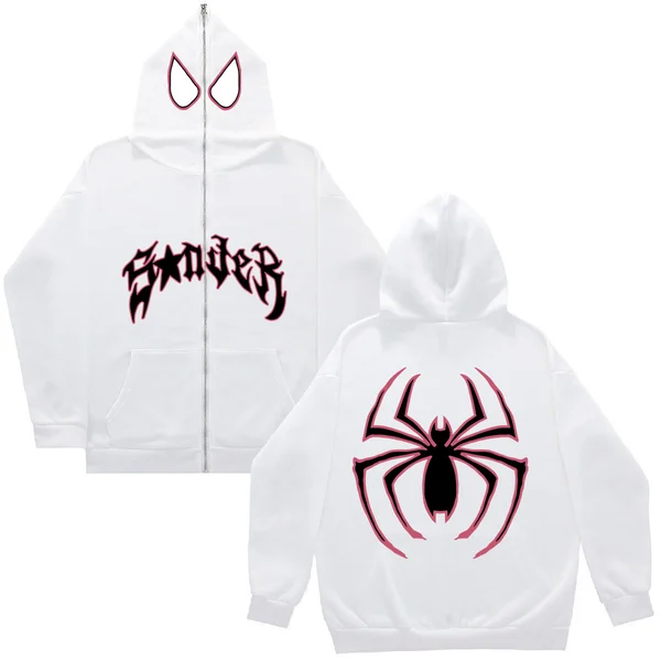 Channel your inner rebel with our Spider Punk Zip-Up Hoodie.