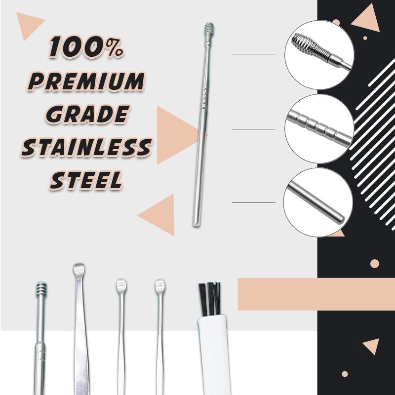 Spiral Spring EarWax Cleaner Tool Set is made of HIGH-QUALITY STAINLESS STEEL that is SPECIALLY DESIGNED to EXTRACT the EXCESS WAX SAFELY and COMFORTABLE. It has a SPECIAL SPIRAL DESIGN that can MASSAGE your EAR CANAL while CLEANING RELIEVING you from ITCHINESS and PAIN.