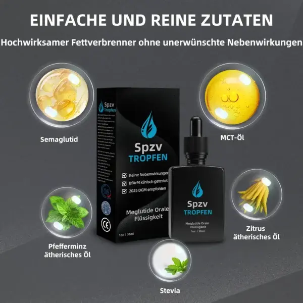 Es ist perfekt für jeden, der fettleibigkeitsbedingte Probleme angehen muss, und ich kann es absolut empfehlen. Eine Flasche der Spzv™ Meglutide Orale Flüssigkeit liefert mehr Vorteile als 15 Tage konsequentes Training. Dies ist ein brandneuer Durchbruch in der Behandlung von Fettleibigkeit weltweit!“ — Dr. Georg W. Ziegenhorn