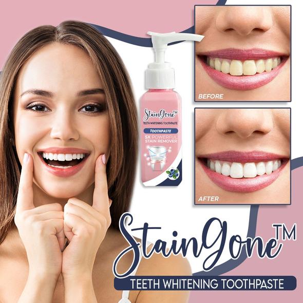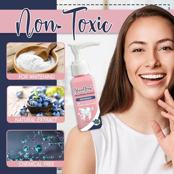 StainGone Teeth Whitening Toothpaste delivers ultra-whitening effect and removes deep-set stain on teeth, powered by the natural cleaning power of baking soda and sensitive-free formula.