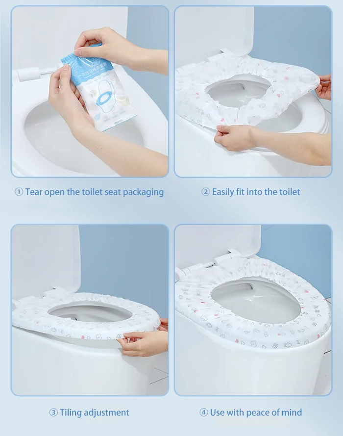 Our disposable toilet seat cover is specially designed for travel, hotel and home use. It has a double-layer printing design and each piece is individually packaged to provide you with a safe and comfortable use experience.