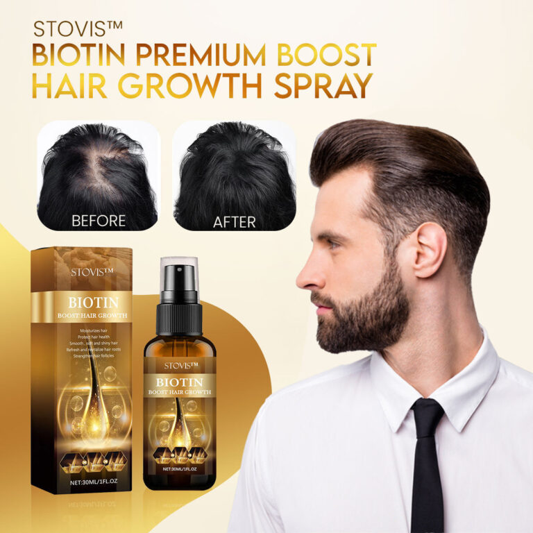 Stovis™ Biotin Premium Boost Hair Growth Spray is dermatologist-tested and provides a natural and effective solution for thinning hair, anti-DHT, androgenetic alopecia, and postpartum hair loss.