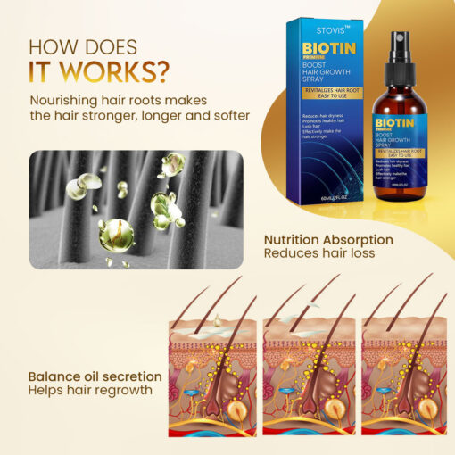 How does Stovis™ Biotin Premium Boost Hair Growth Spray work?