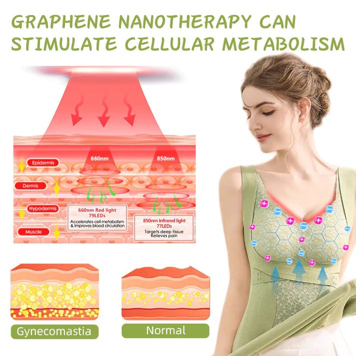 Research results indicate that the Graphene Bra-Free Shaping Heated Vest is an innovative garment capable of generating infrared energy without depending on external power sources. According to data from the New York Medical Center, graphene nanotherapy not only improves blood circulation, stimulates cell metabolism, and promotes collagen production but also enhances the burning of calories, leading to weight loss.