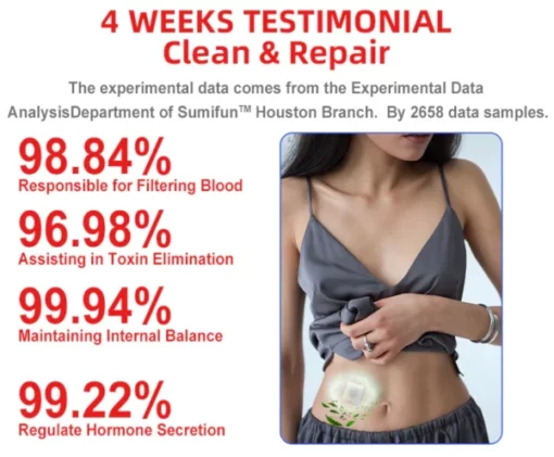Dr. Marcus‘s research team has created the Sumifun™ Stone Cleansing Patch, cleverly utilizing a natural formula of pure plant extracts to repair the kidneys and restore their normal function within 3 weeks, thus enhancing the body’s detoxification capabilities. Additionally, it can regulate the number and composition of blood cells in the bloodstream, maintaining blood stability.