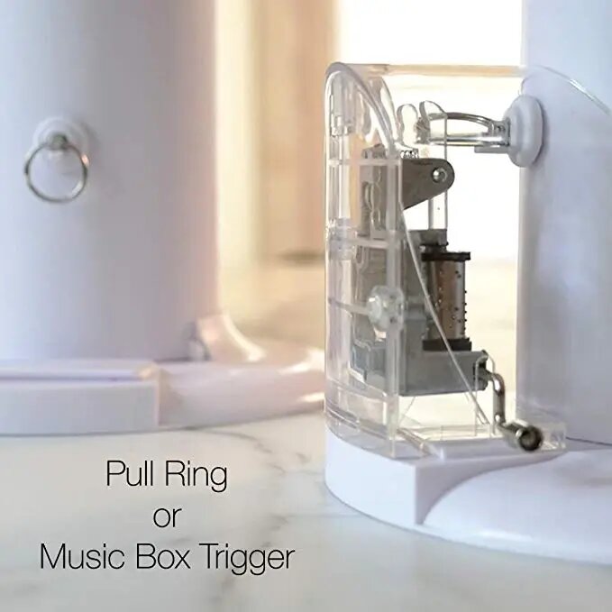 A small little key-ring-type device is located towards the bottom of the stand where a parent or creator of the cake can use to trigger the middle tube to pop open the internal gift from the top of the cake. Not only does it pop-up a surprise gift for the birthday person, but it also sings a song once triggered. You can pick between the standard happy birthday song, pop goes the weasel, or choose to have no melody.