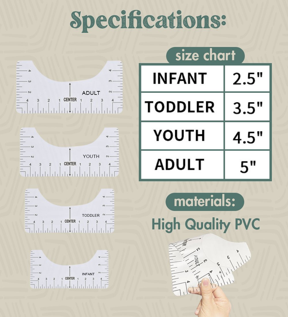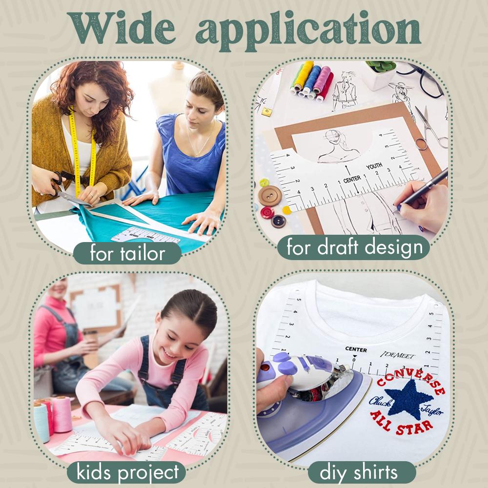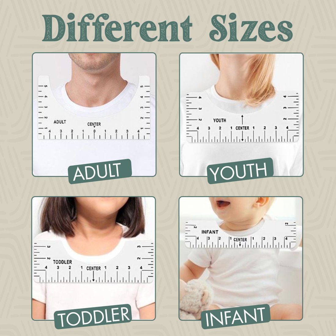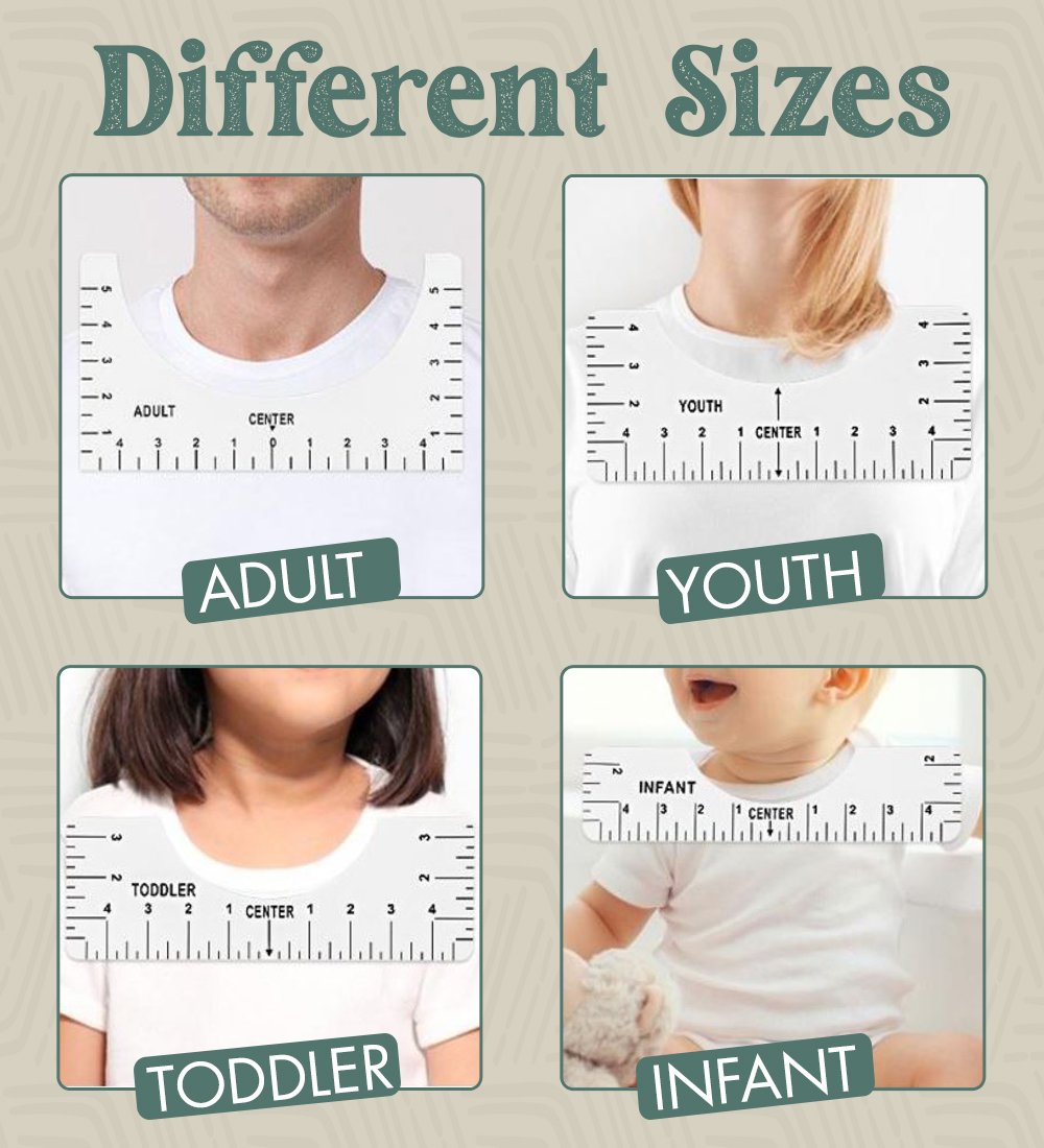 Sizes of the t-shirt rulers guide for vinyl are designed for adult, youth ,toddler and infant. Center alignment rulers is marked for age groups, which can meet different needs.