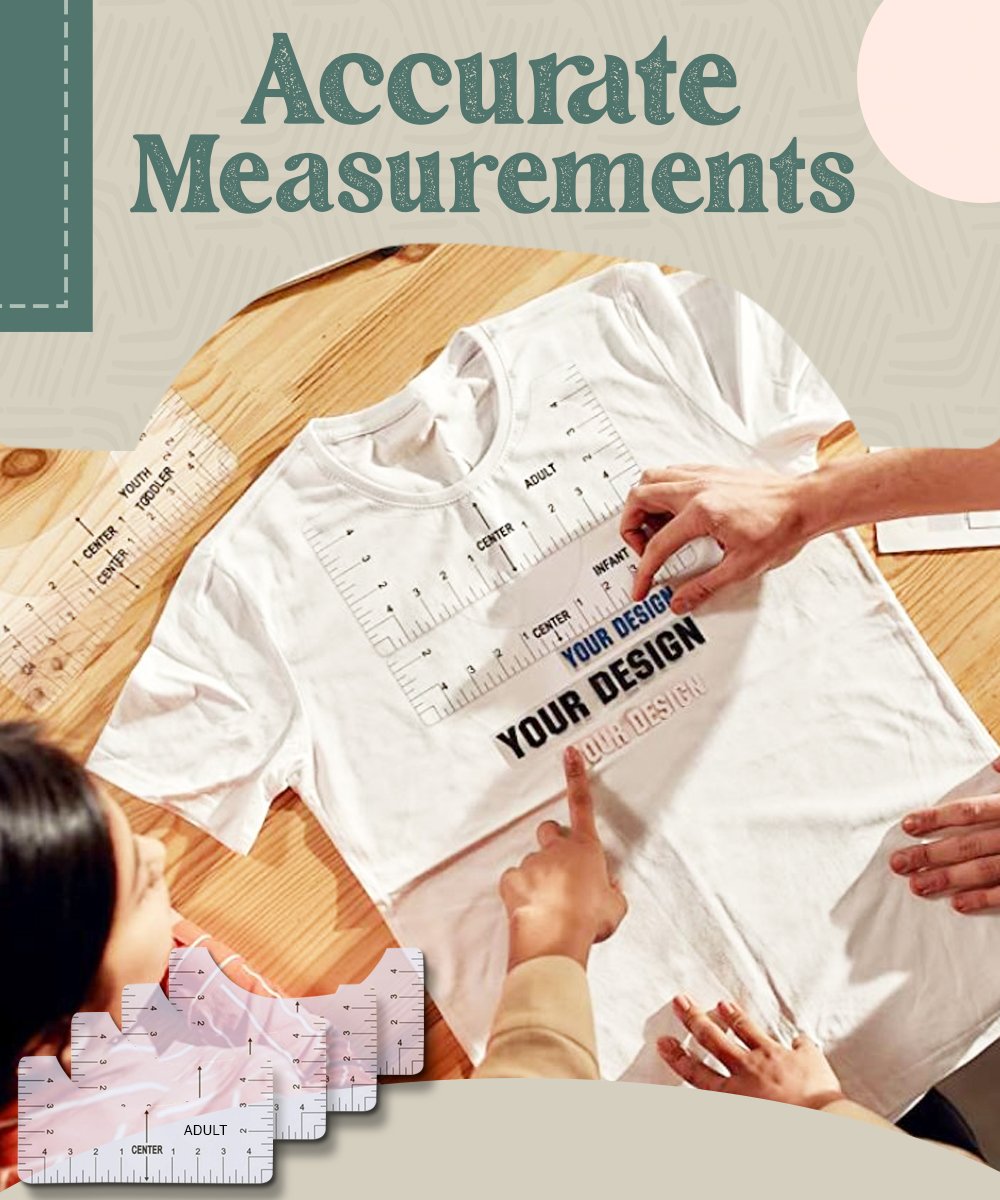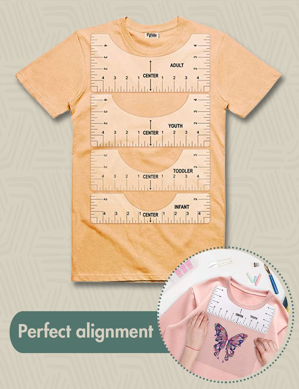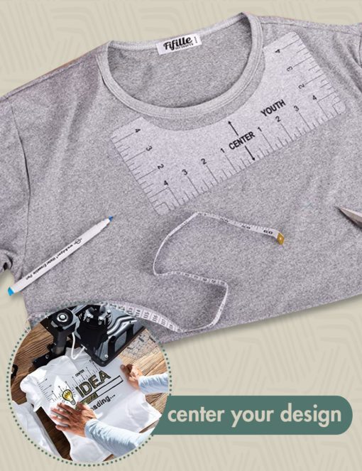 This T-shirt design tool is very helpful when aligning the design with the T-shirt. It is easy to use, just align the ruler to the collar, and then design according to the center.