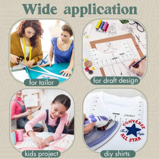 1. T-Shirt Alignment Tool– shirt ruler guide for vinyl set contains 4 different sizes rulers, 1 piece sewing mark pencil and 1 piece soft measuring tape. Help you to make alignments and save time on center your designs.