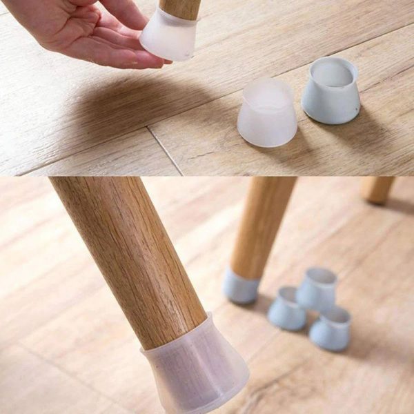 FLOOR PROTECTORS: Protects both chair table legs and floor from damage; Anti-slip bottom pad prevents scratches and noise without leaving marks. The flexible silicone box is easy to slip on, giving chair leg a snug grip like a glove. No more annoying noise made by feet and floor.