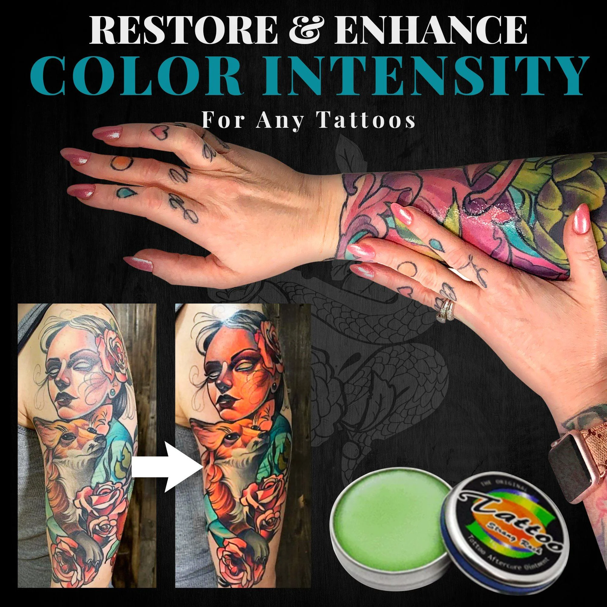 ![]() This aftercare balm keep tattoos of any color bright and vivd in any situations by drawing the tint to the closer layer of your skin, and prevent them from fading as time passes.