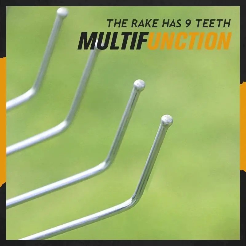 The rake has 9 teeth, which can remove debris without damaging the roots of plants, and is easy to enter under bushes, between flowers, or in vegetable gardens. It is very suitable for cleaning leaves and weeds in gardens and lawns. You can also use it to pick up pine cones.