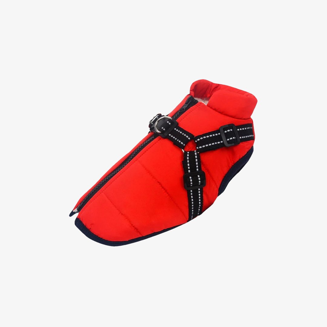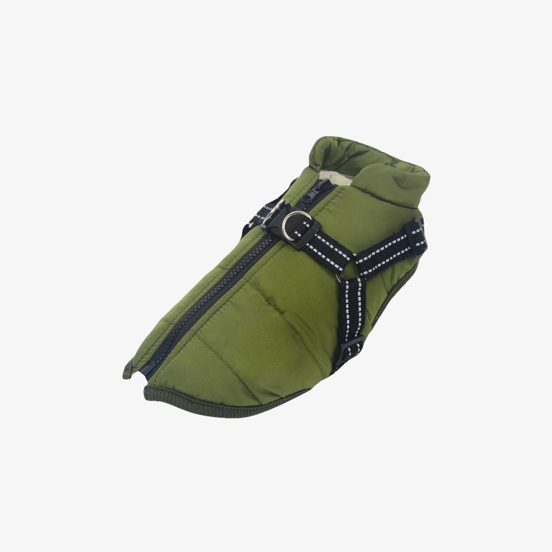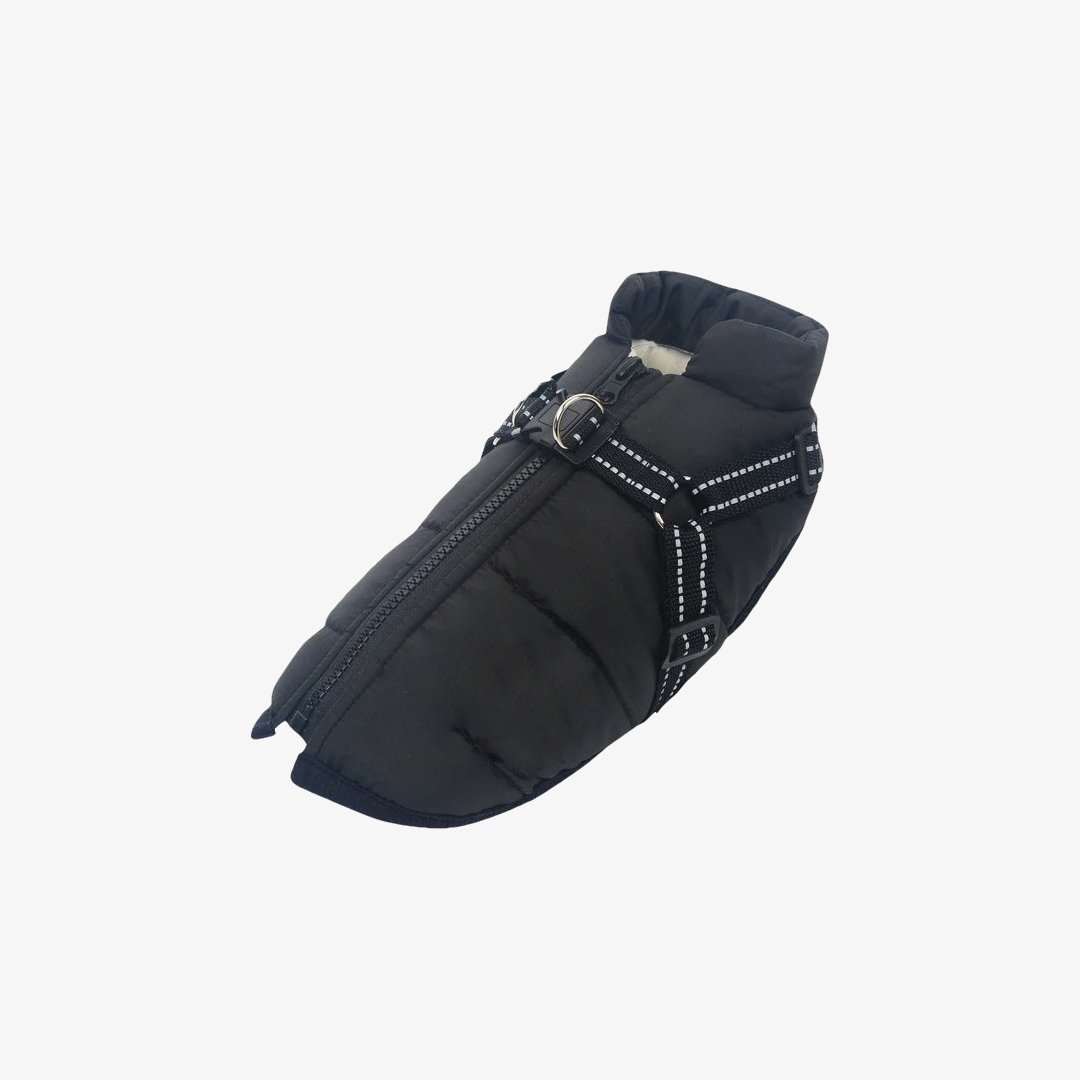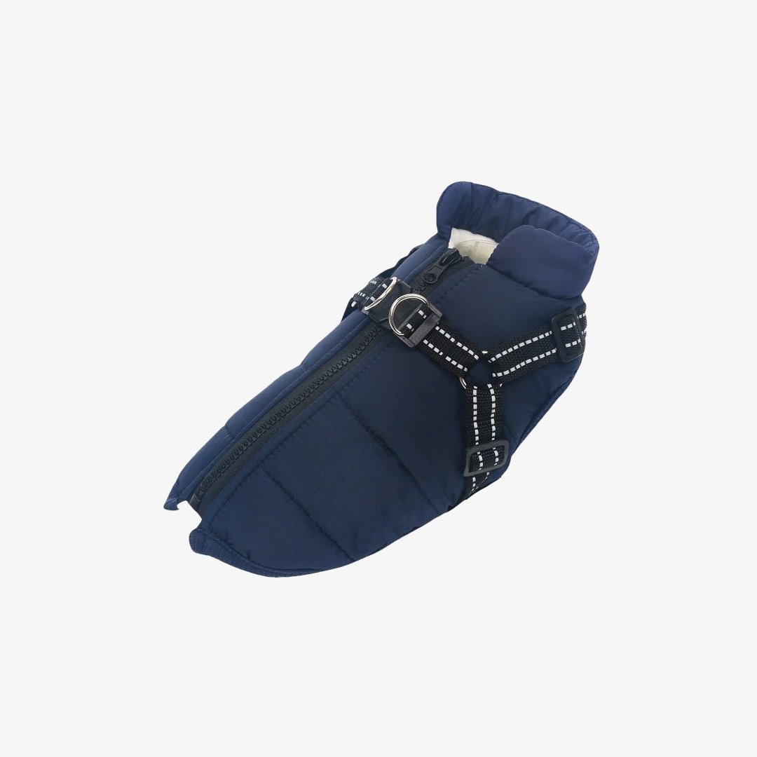 - With a water proof exterior, fleece interior, and a built in harness, it’s easy to keep your dogs calm & cozy.