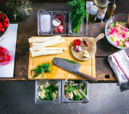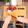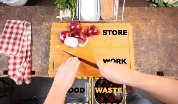 To use it, just place the cutting board work bench on an edge or corner of your counter and let the containers hang off the edge. When you’re slicing and dicing your onions or peppers, just push the good stuff into one container, and push your scraps into the other. You can then pop the containers in and out for each ingredient or mix them all together in one if it doesn’t matter.