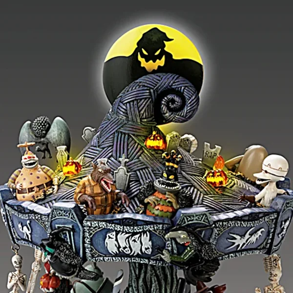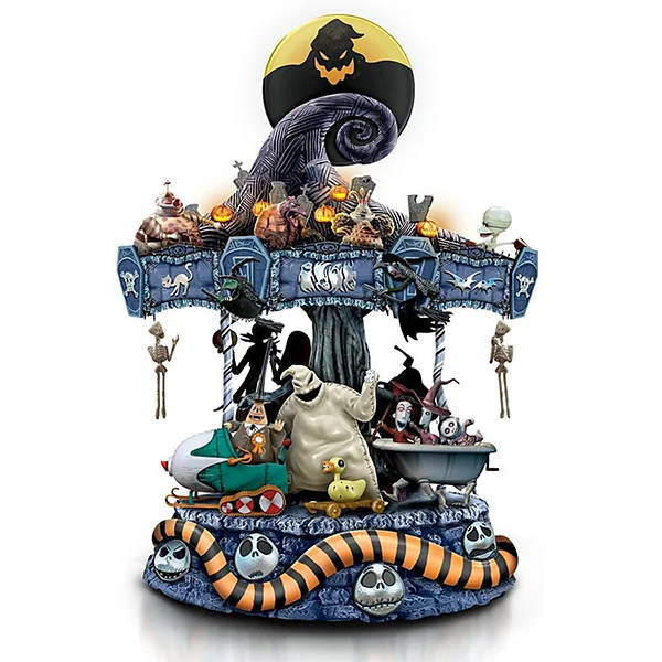 Inspired by a poem Tim Burton had written in 1982 while working at the Walt Disney Animation Studios, Tim Burton’s “The Nightmare Before Christmas” went on in 1993 to become a film classic that captures the hearts and imaginations of millions. Now, the blockbuster film inspires The Nightmare Before Christmas Carousel, an inventive first-ever from The Bradford Exchange that whirls you back to Halloween Town with the turn of a key and a spectacular display of lights, music and motion. Jack Skellington, Sally, Zero, Oogie Boogie, Dr. Finkelstein, the Mayor, Lock, Shock and Barrel – all your favorite characters are here, over twenty in all, hand-sculpted, handcrafted in artist’s resin, and hand-painted in frighteningly fine detail.