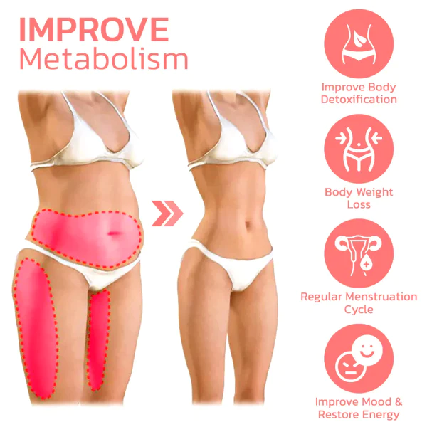 ✔ Multiple benefits – eliminates fat and toxins, regularizes menstruation, lifts hips, improves blood circulation, eliminates itching and vaginal tightening
