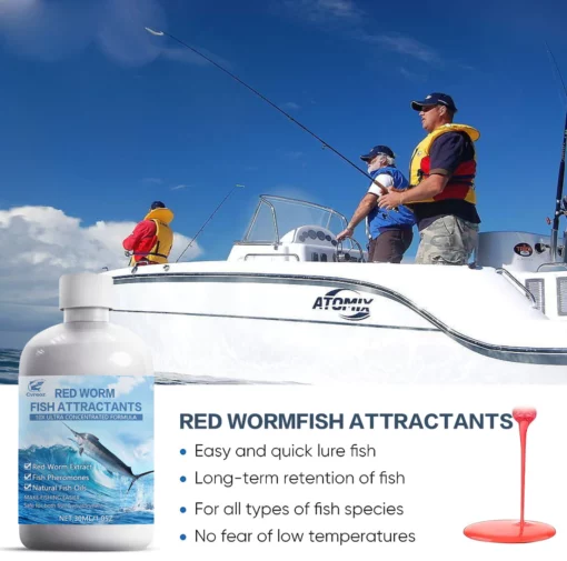 Introducing our advanced TIMNAMY™ Red Worm Fish Attractant, combining Red Worm Extract, Fish Pheromones, and Natural Fish Oils. Scientifically formulated to enhance bait appeal, it triggers natural feeding responses, making your fishing experience more rewarding. Ideal for various baits like swimbaits, soft baits, worms, and jerk baits, our attractant amplifies your chances of success on the water. Elevate your fishing game with the power of science-backed attraction.