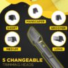 It has 5 Interchangeable Trimming Heads that can trim all types of hair in any part of your body! Just pick a trimming head, and get grooming right away!