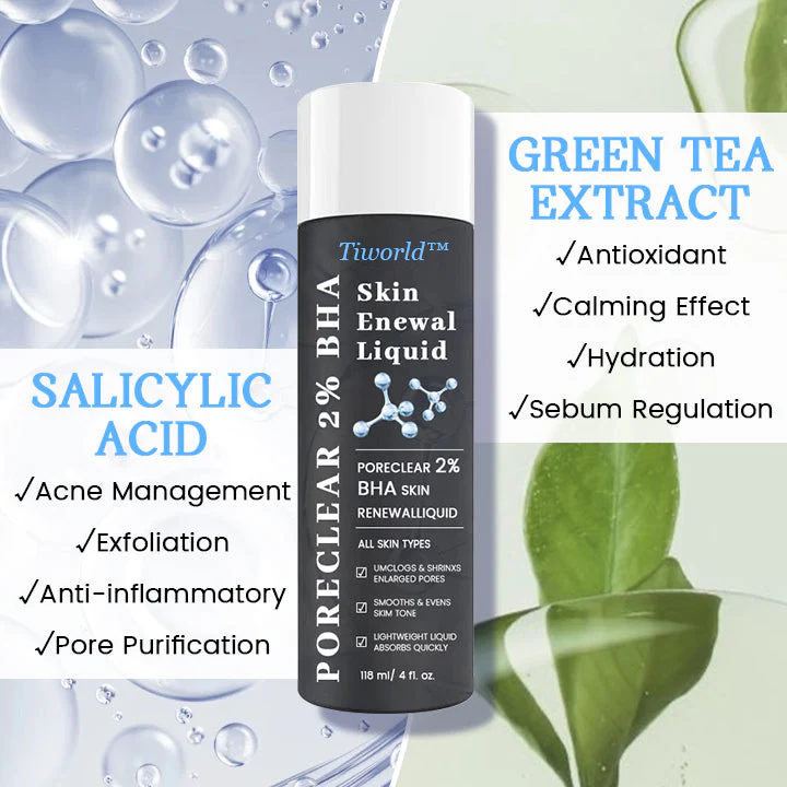 Tiworld™ PoreClear 2% BHA Skin Renewal Liquid features two principal active components: