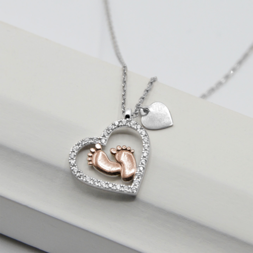 To My Mommy – Baby Feet Heart Pendant Necklace Gift Set