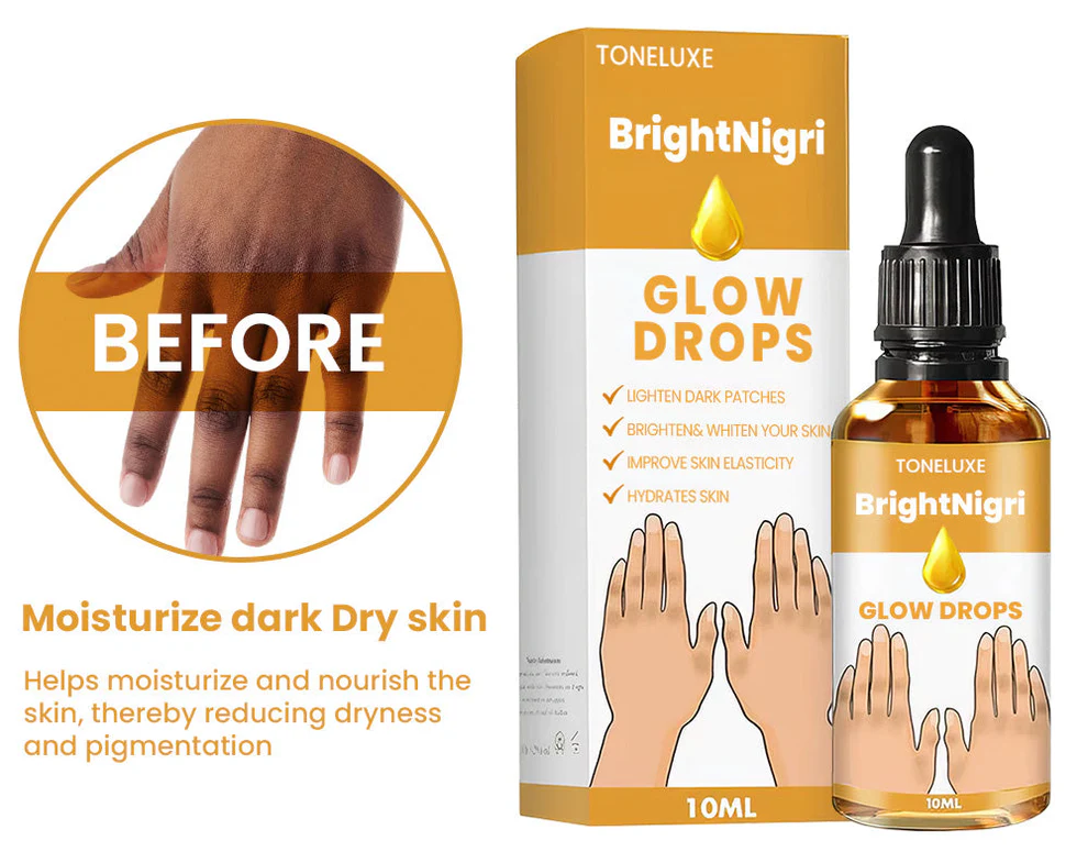 ToneLuxe BrightNigri Glow Drops antioxidants that can help improve the overall health and appearance of the skin. This oils can help hydrate and nourish the skin, which may reduce the appearance of dryness and discoloration, giving the skin a healthier, more even-toned appearance. By exfoliating the top layer of dead skin cells that may be causing a dull or uneven skin tone, exfoliation can assist to lighten dark skin.