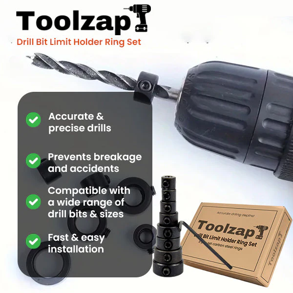 Are you tired of drilling too deep or not deep enough? Say goodbye to imprecise drilling with the ToolZap™ Drill Bit Limit Holder Ring Set! Our innovative set ensures accurate and consistent drilling depths every time, empowering you to tackle your projects with confidence and precision.