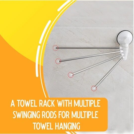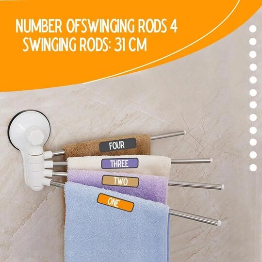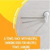 - A towel rack with multiple swinging rods for multiple towel hanging.