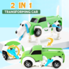 2 IN 1 TRANSFORMING CAR: This transforming car will automatically convert from car to dog with just the winding of winder. Cute dog design and large enough to hold, bright colored and no small pieces to worry about.