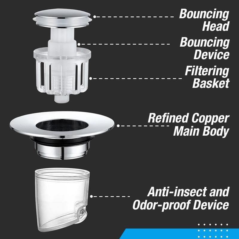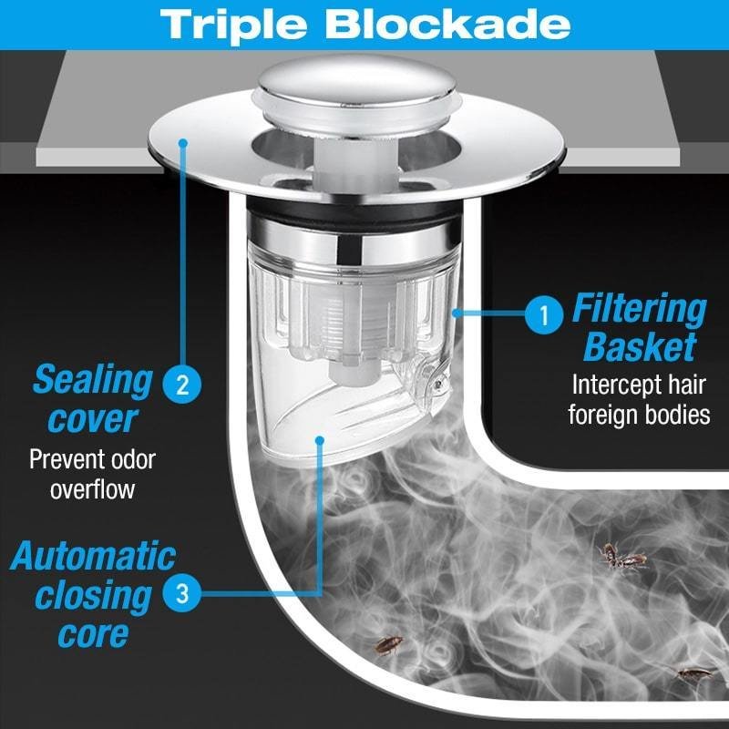 This triple blockade pop up sink stopper can perfectly solve the problems of stinking and clogging!