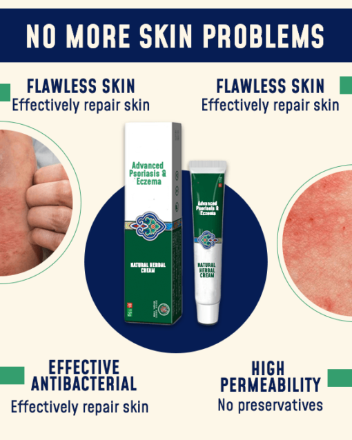 Advanced Psoriasis & Eczema Natural Herbal Cream rebuilds microscopic cracks on skin’s outermost layer to cease flaking & inflammation, foaming a protective seal to strengthen skin with natural herbal essence.