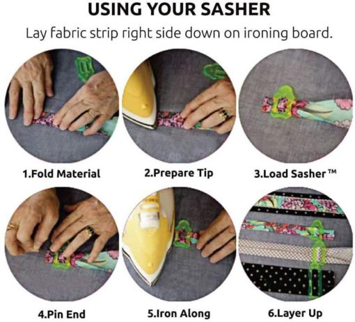 - No More Burnt Fingers – We’ve all been there, you’re spending an hour making your bias strips and the iron catches your finger. Ouch! That’s why we created the Sasher collection. It makes creating bias tape, bindings, and jelly roll effortless.