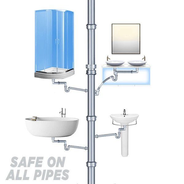 - Works on pipes, toilets, sinks, tubs and in other main drain lines