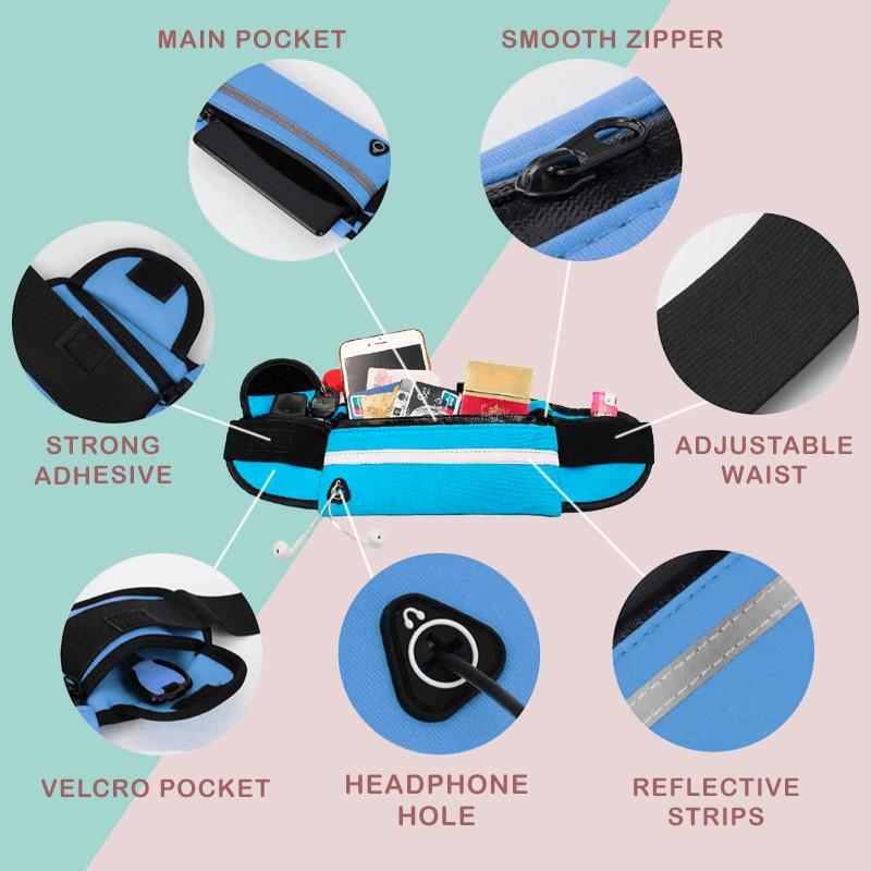 - COMFORTABLE DESIGN. An ultra-light and breathable bag with anti-slip design which prevents bouncing making it perfect for travelling, exercising, biking, hiking, concerts and so on!