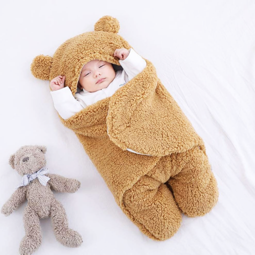 The baby sleeping bag is not only cute, warm and comfortable, but it is also made of wool and cotton which makes it look like you are literally cuddling a teddy bear.